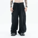Washed and Worn Multi-pocket Cargo Jeans